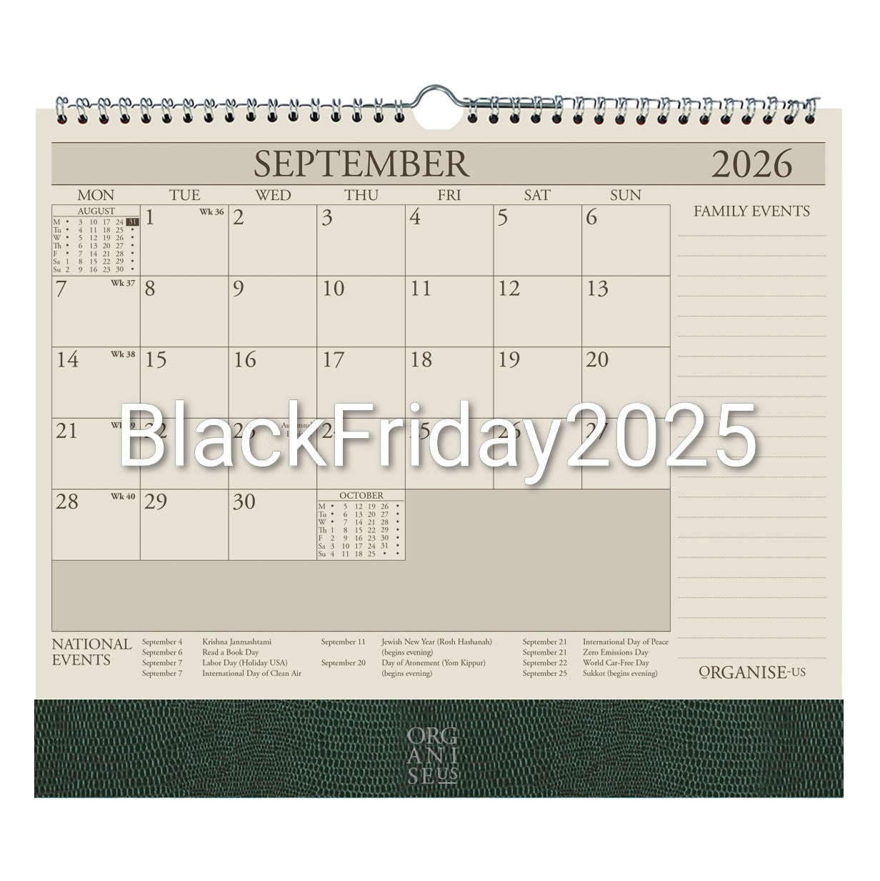 The Organiseher™ 16 month Wall Planner 2025-2026 in Dark Green Lizard